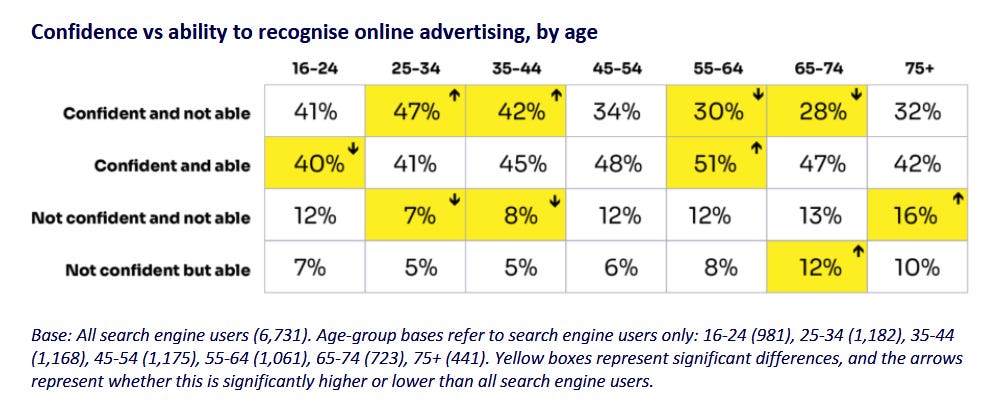 It’s also a debate that only really matters to us in comms and ad land. Audiences don’t care - and in many cases, they can’t even tell the difference between sponsored and organic content. Based on Ofcom’s Adults’ media use and attitudes report, only 52% of UK adults can correctly identify the sponsored links on Google. It was also the younger end of the spectrum that was more likely to be incorrect - perhaps because they’ve all moved to TikTok for search.