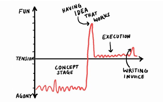 But normally, the middle is where the magic happens—when you turn something vague and unformed into something tangible and defined. A campaign ready to launch into the world or a pitch ready to wow the client. And then it’s done, and on to the next thing.