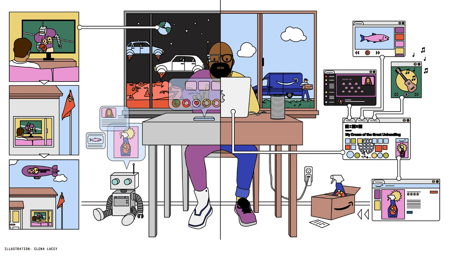 The juxtaposition of those last two meta-trends presents a fascinating tension. We remain hopeful for a seamless, frictionless, automated future where tech can help solve some of society's biggest challenges. But our experience of the past five or six years has made us wary of the tricky tech trade-offs. Surveillance, exacerbated inequality, monopolies - you probably don't need me to list them out. We're more inclined to dystopian visions than we are utopian ones.